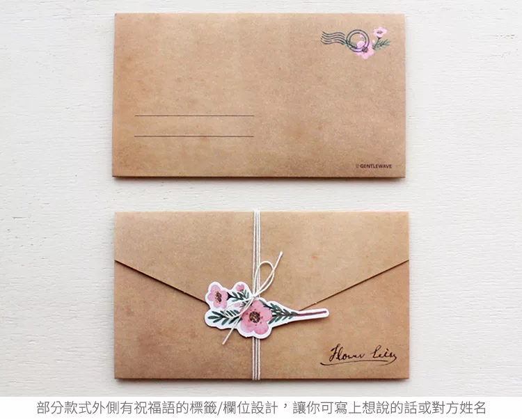 部分款式外側有祝福語的標籤/欄位設計,讓你可寫上想說的話或對方姓名。