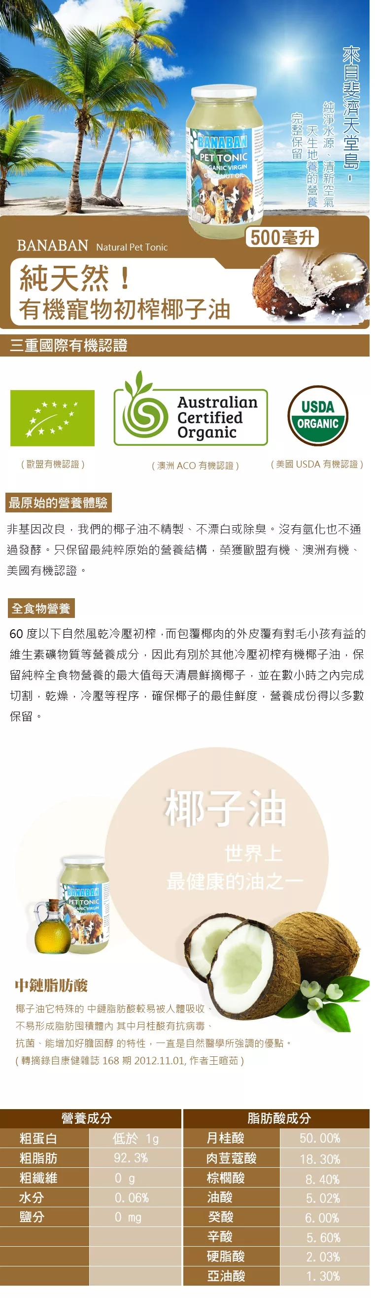 旺旺博士的天然有機寵物初榨椰子油更是具有兩大健康保證