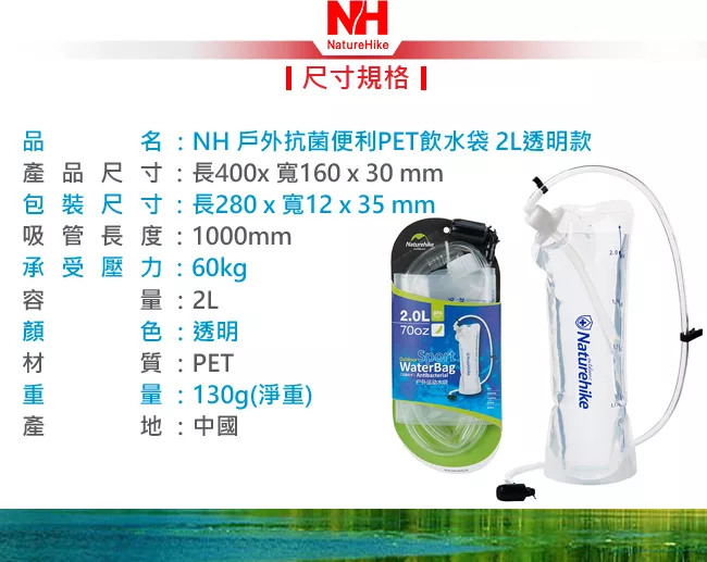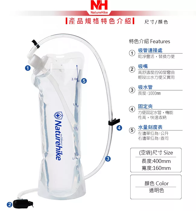 Naturehike運動專用 攜帶式吸嘴飲水袋2L_長跑型