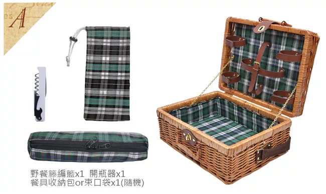 註2.網頁照片僅供參考,不含食物及擺飾等用品,實際內容物請以野餐籃組合內容文字為主。
