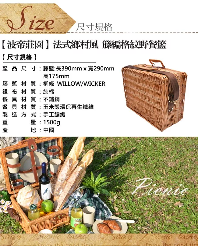 【波帝莊園】法式鄉村風 手工籐編格紋野餐