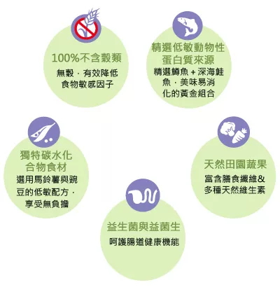 1.100%不含穀類:無穀,有效降低食物敏感因子