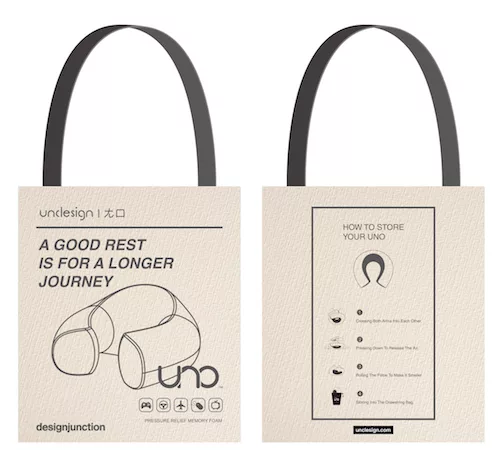 UNO不僅是個集美感與舒適於一身的頸枕,利用隨盒附送的束口袋,讓旅行中的UNO既時尚又方便。可水洗的外層面料,使用高透氣SPANDEX材質,確保UNO能適應更多不同的環境。