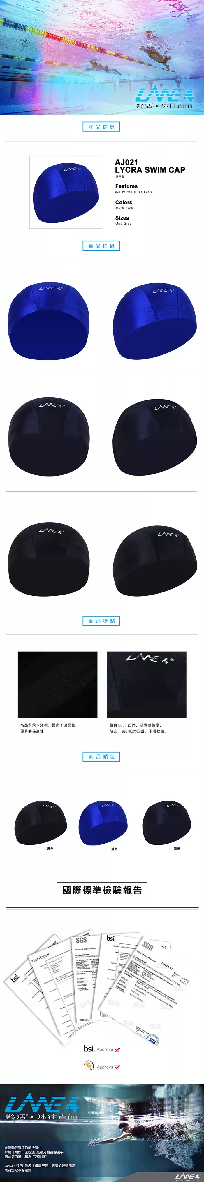 商品推薦:LANE4羚活萊卡舒適彈性泳帽-男用黑印白