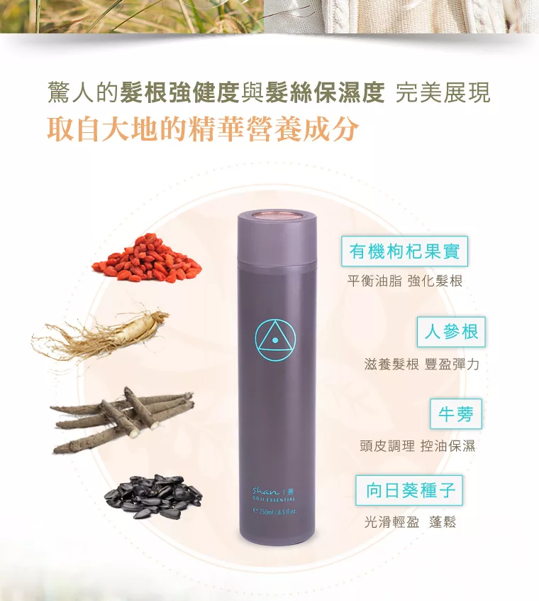 商品推薦:shan善 枸杞萃豐盈洗髮菁250ml