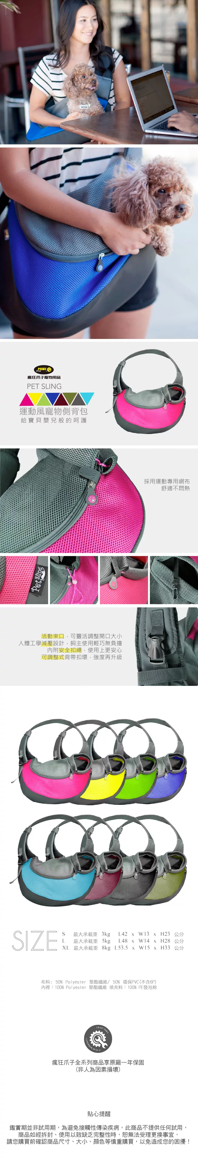 真愛橋評價【crazypaws瘋狂爪子】運動風寵物側背包-S黑